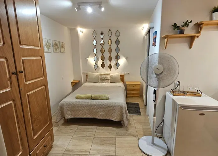 Panagia-Turliani-Kloster lässt sich von den 1-Zimmer-Apartments aus innerhalb von rund 15 Minuten mit dem Auto erreichen. Fabrica-Platz ist in weniger als 1 km Entfernung vom Apartment, während die Bushaltestelle Old Port in einer 150 Meter Entfernung von der Unterkunft ist. Klein-Venedig liegt ungefähr 9 Fußminuten von diesen Unterkünften entfernt.